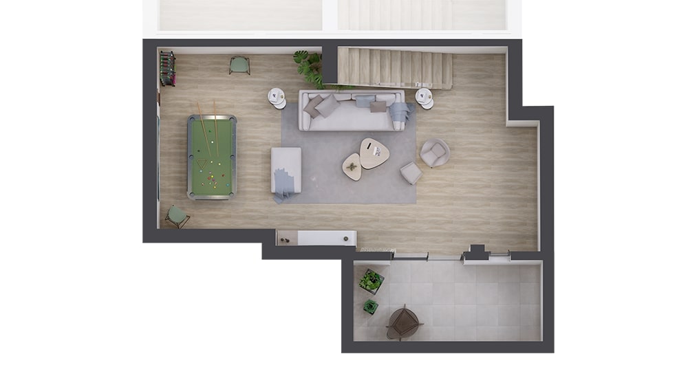En el sótano disponemos de una gran sala polivalente y un amplio patio inglés para dotar de luz y ventilación a tu sótano, sumando 76.52 m2 al total de superficie construida.